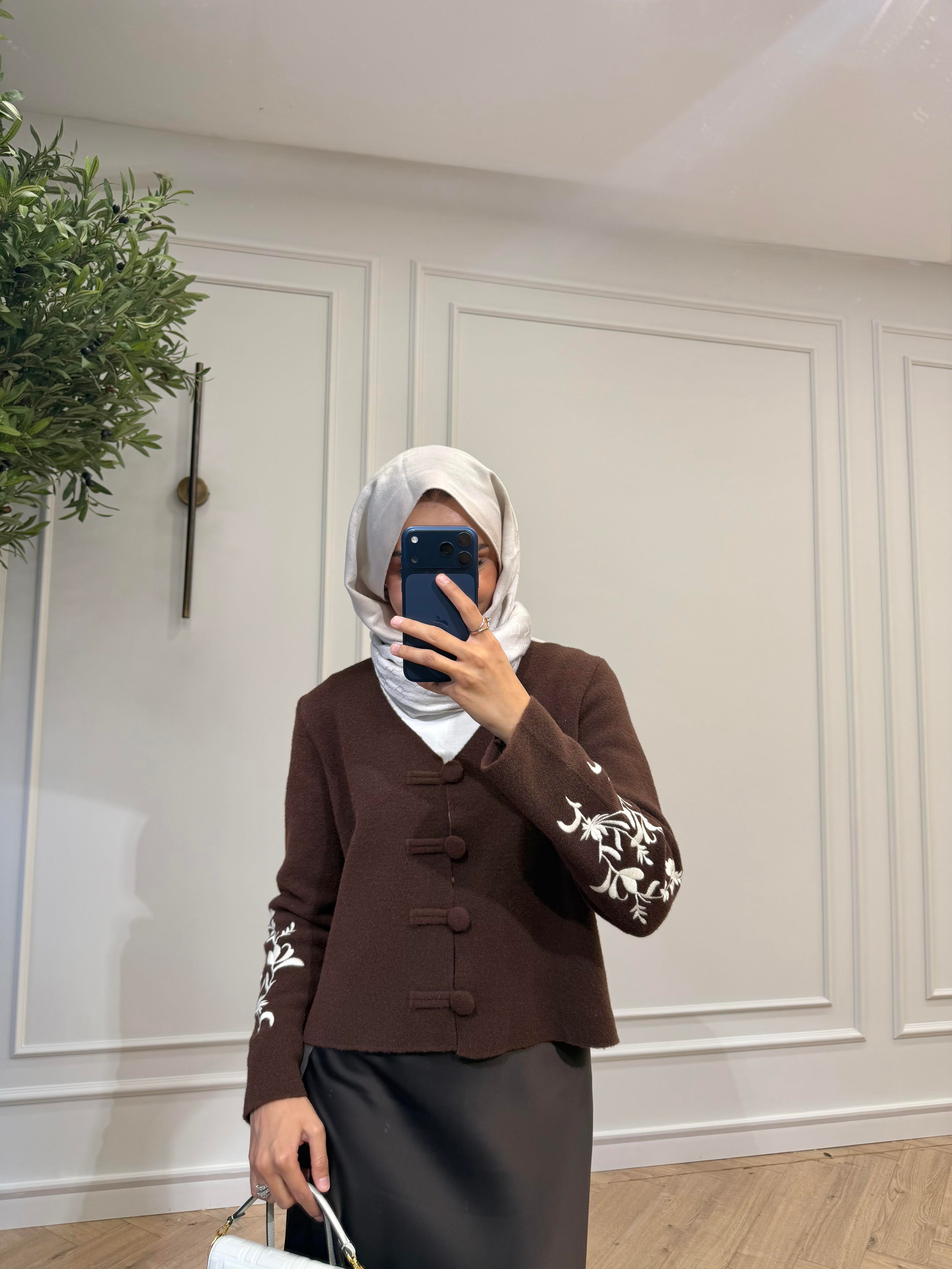 Catry Kolları Nakışlı Ceket - Kahve
