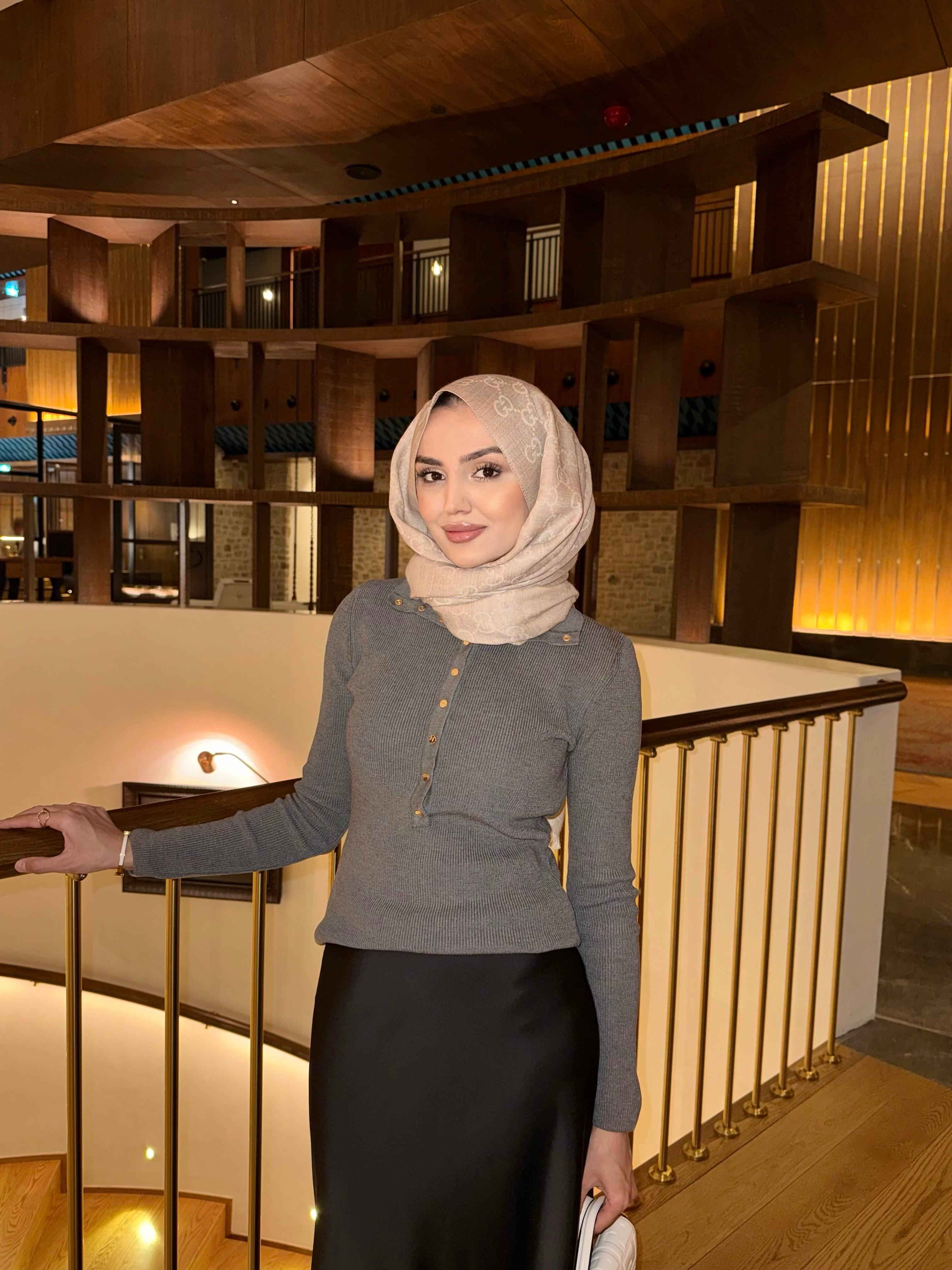 Dilvin Dik Yaka Çıtçıtlı Triko Kazak -Füme