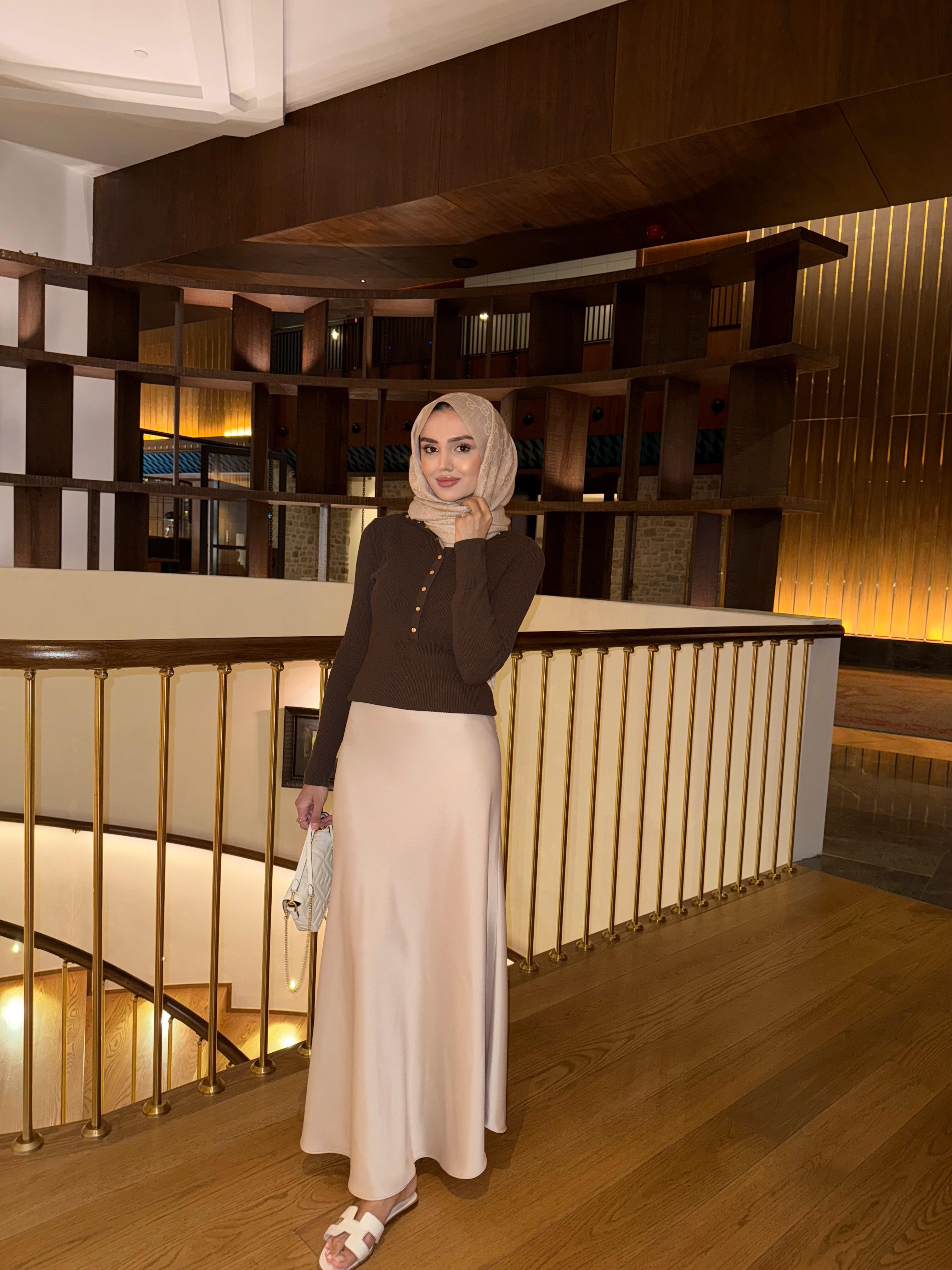 Dilvin Dik Yaka Çıtçıtlı Triko Kazak -Kahve