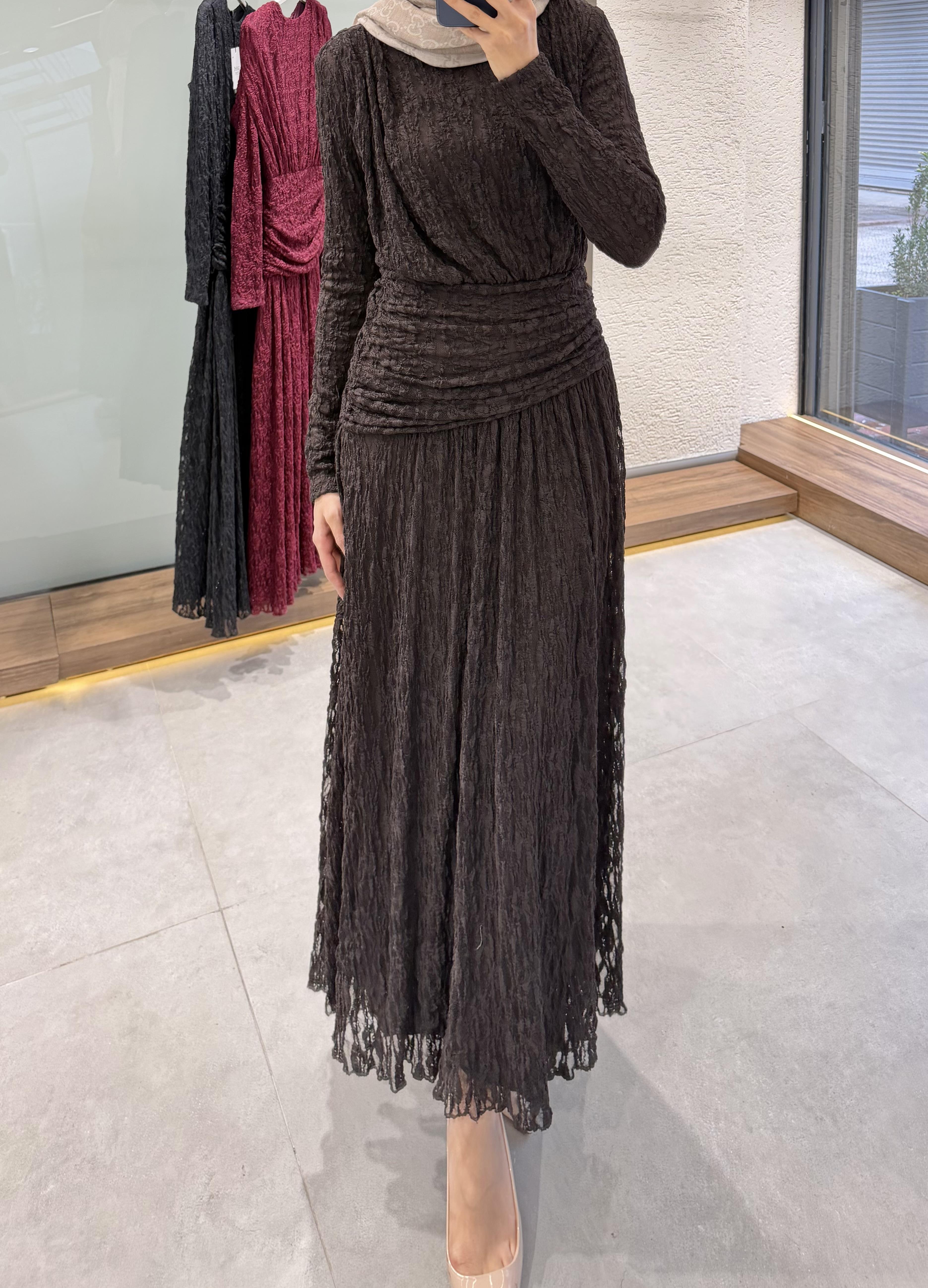 Elyon Dantel Elbise - Kahve