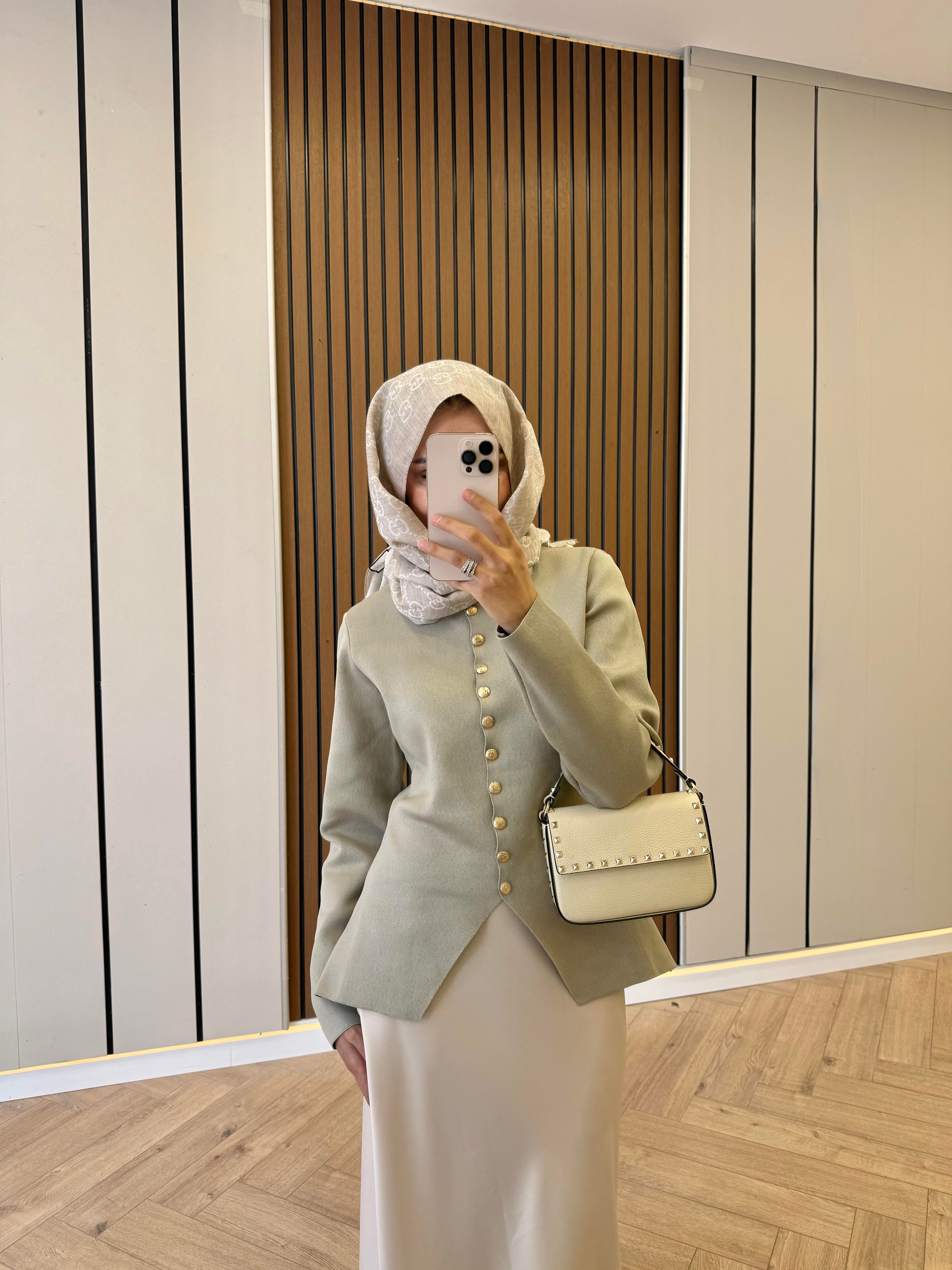 Gold Düğmeli Merserize Hırka- Taş