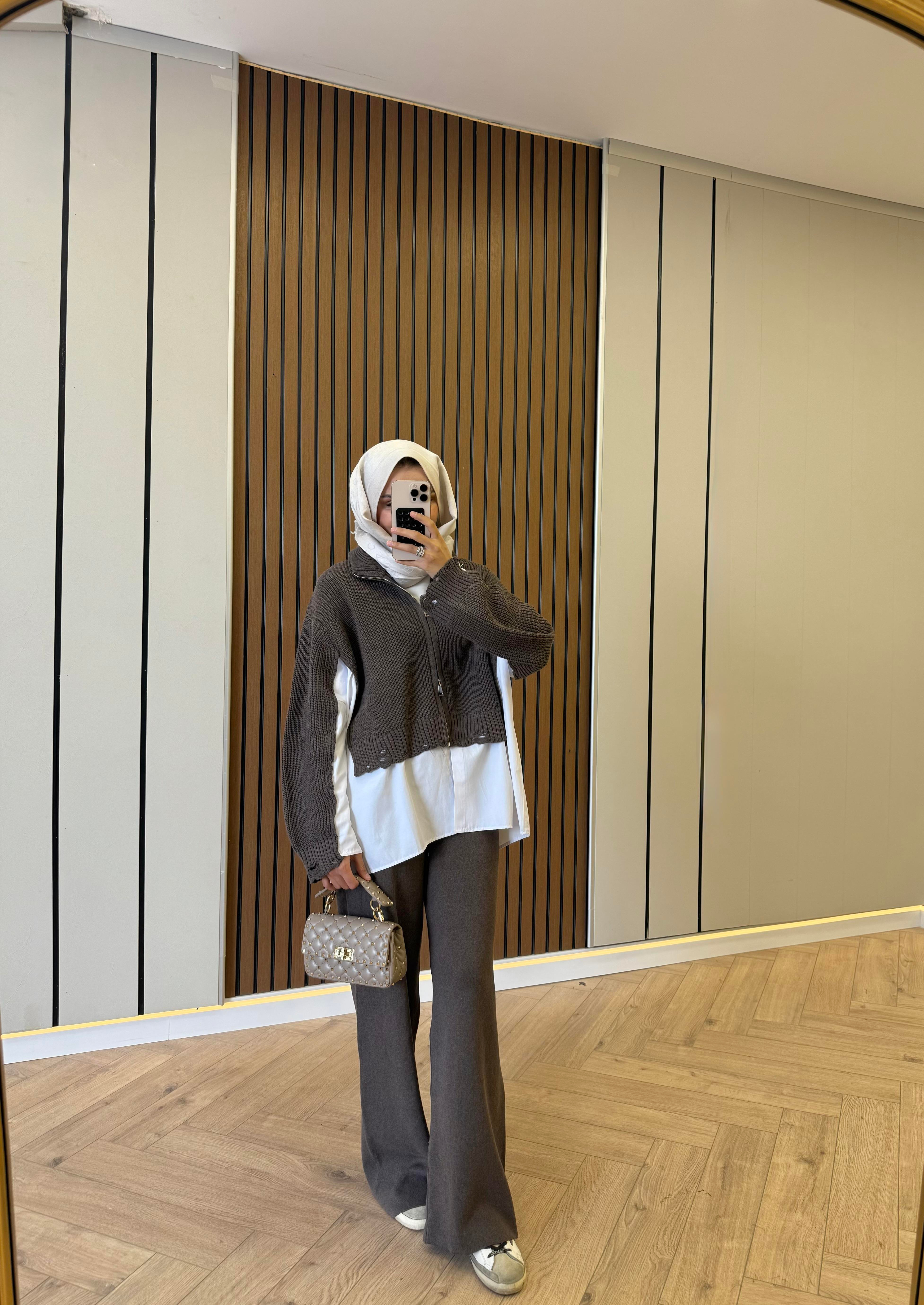 Gömlek Parçalı Triko Takım Kahve
