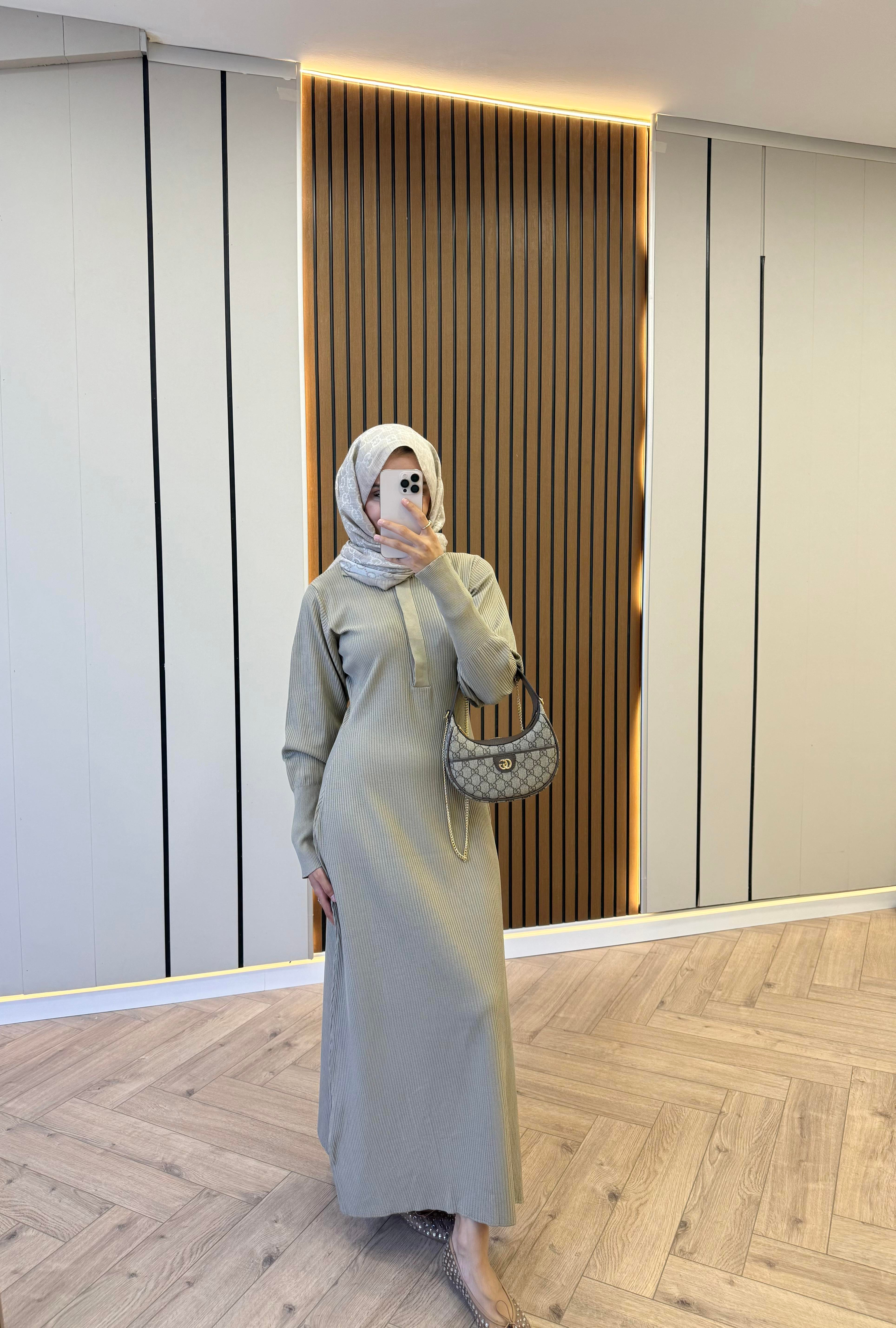Mayla Dikey Çizgili Triko Elbise  Mint