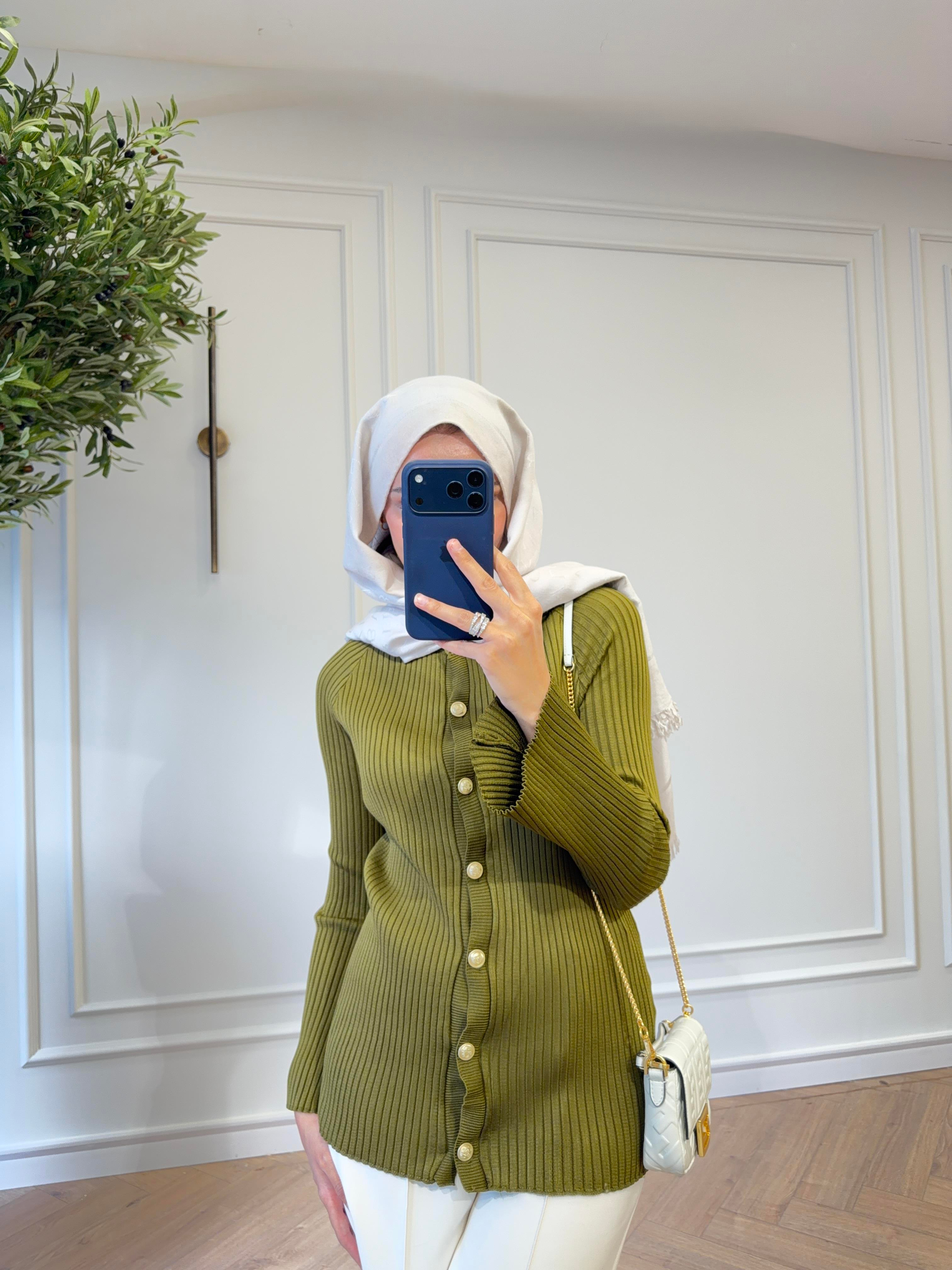 Remry Triko Hırka - Yağ Yeşil