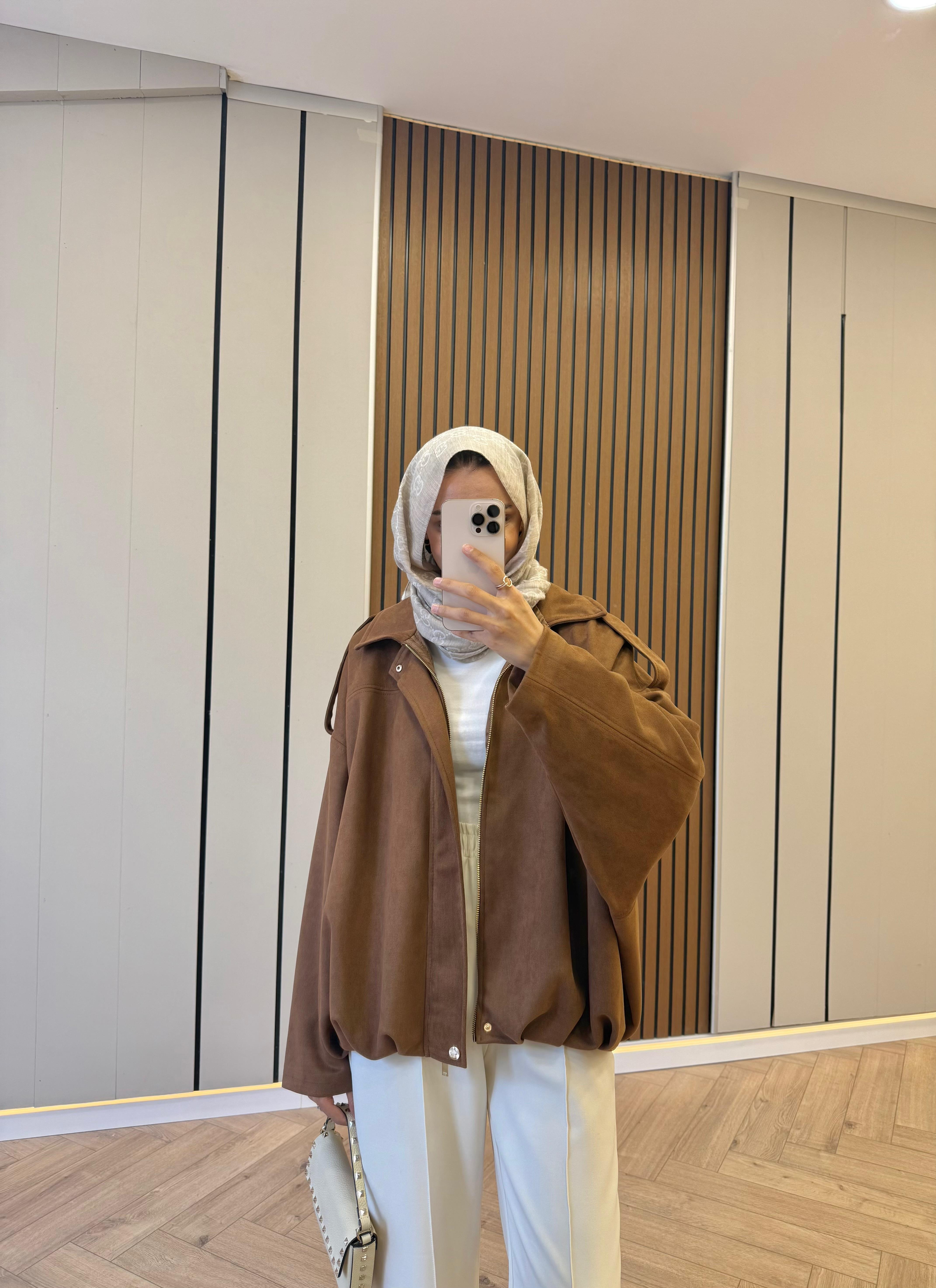 Süet Kumaş Bomber Ceket Camel