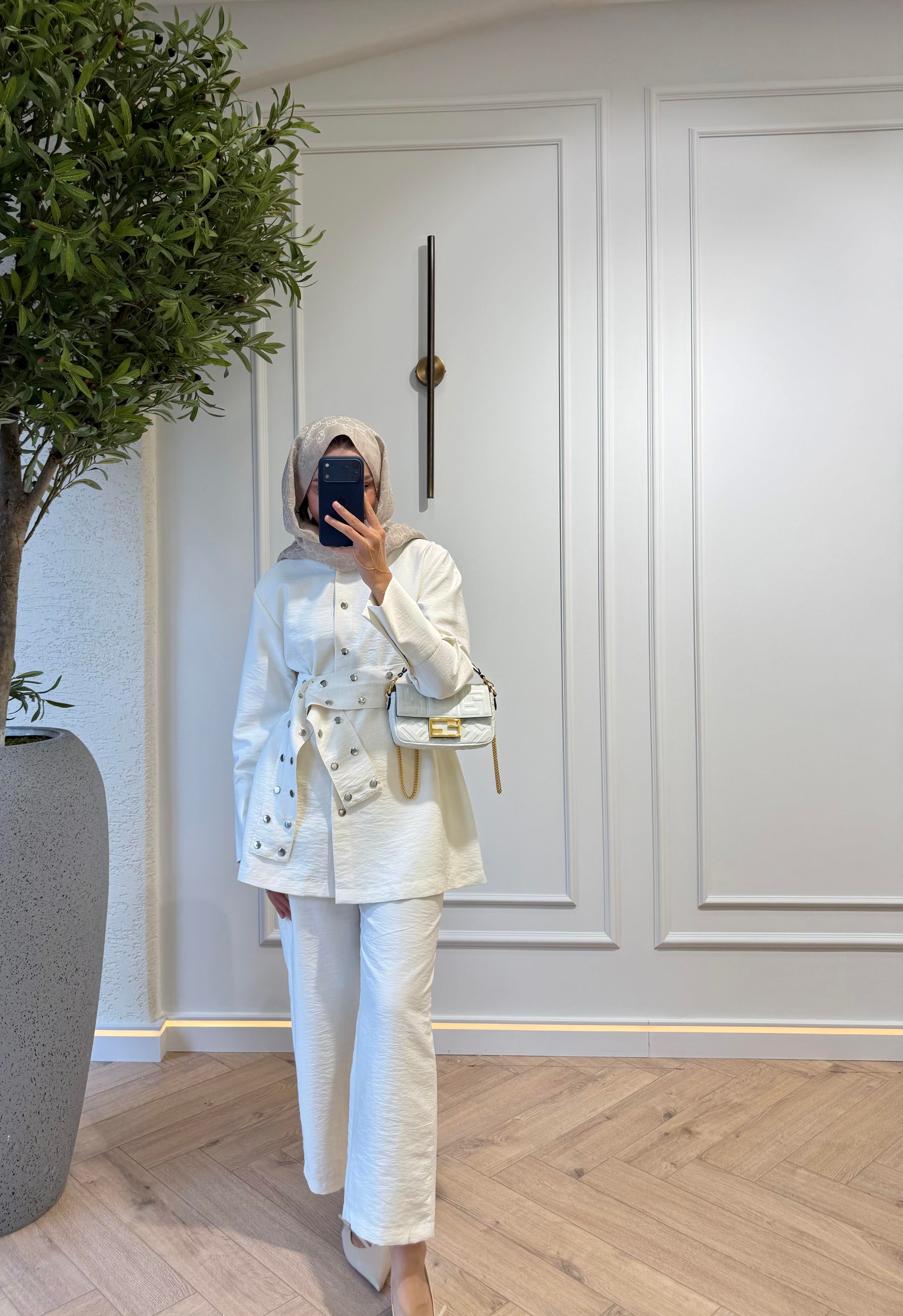 Zımbalı Takım - Beyaz